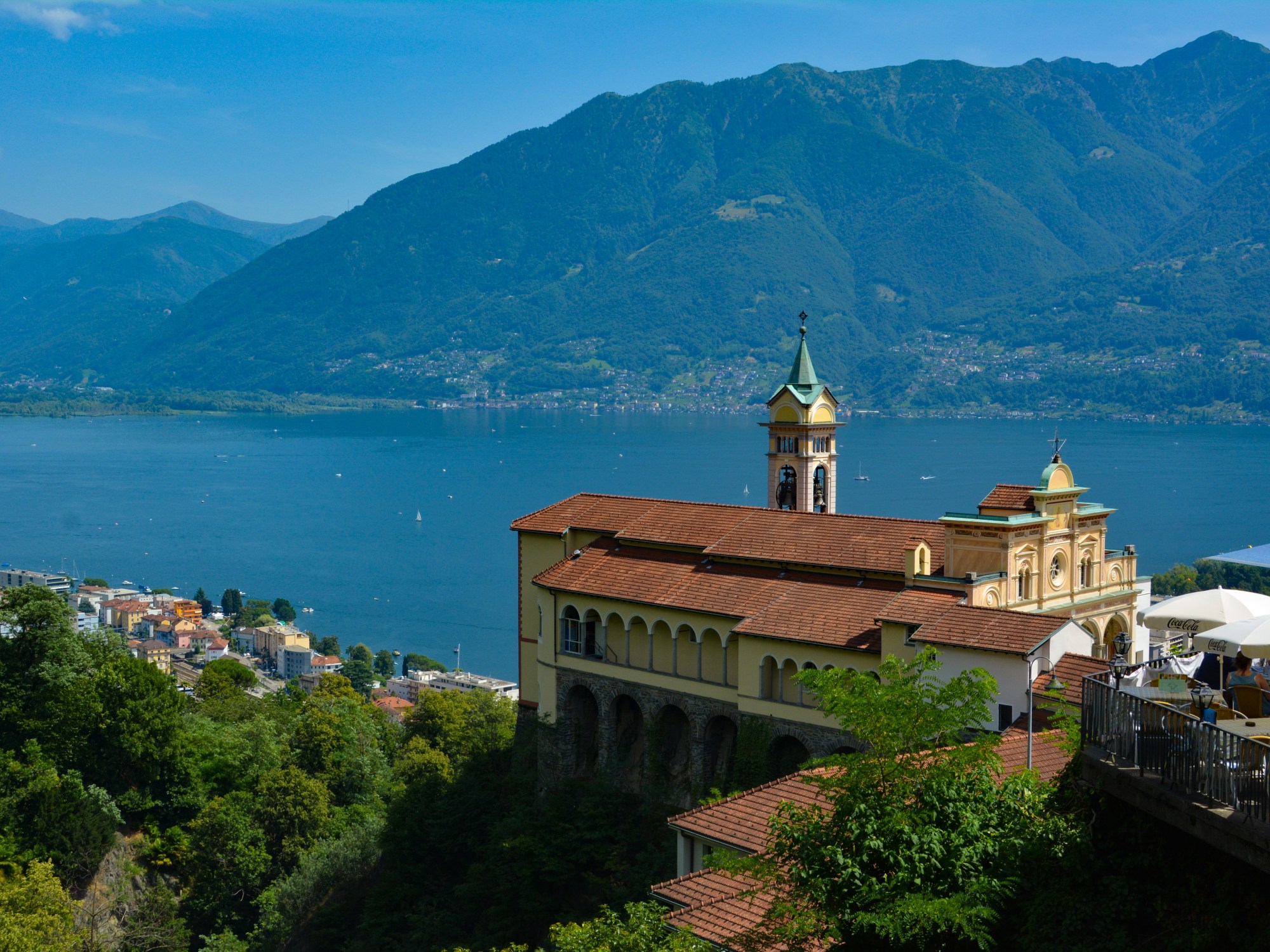 A quiet escape from the heart of town is the Madonna del Sasso sanctuary. You can reach the sanctuary by funicular (cash only, and half-fare cards are not accepted), or you can walk to it along a lovely inclined cobblestone path flanked by a forested area and beautiful hydrangea blooms.