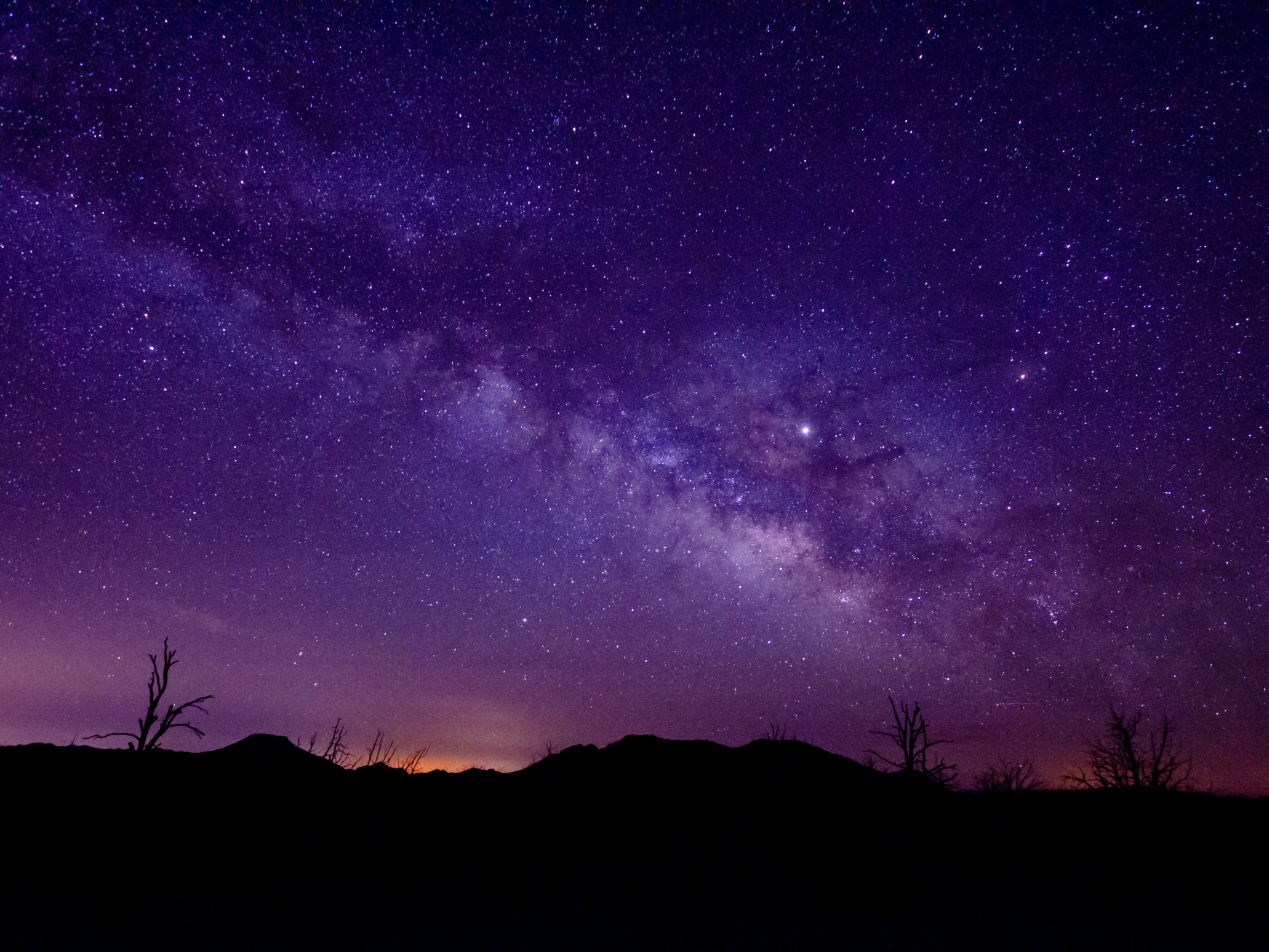 We used Stellarium to plan out our photos before we left home to get an idea of where to look in the sky. The core rises in the southern sky in the general direction of the constellation Sagittarius and moves up and east until it is obscured by light from the rising moon. When we popped out of our tent at 3AM, it was totally obvious where to look :). Using the SLR camera settings and focusing tricks Jennifer Wu recommends in her book excellent book, Night Sky, we set up a camera on a tripod and started taking pictures in an easterly direction. We found the best pictures came out by using ISO 6400, setting a 20-second exposure, and manually focussing on the brightest star using the live view mode on the camera. We adjusted the photo in Adobe Lightroom later to remove some noise and set the white balance. We shot for about 45 minutes, after which our hands were too cold to keep going :). The photos turned out really well, with a beautiful sky framed by the barren trees and rocky peaks of the desert. Enjoying the dark skies of the park was probably the highlight of our trip.